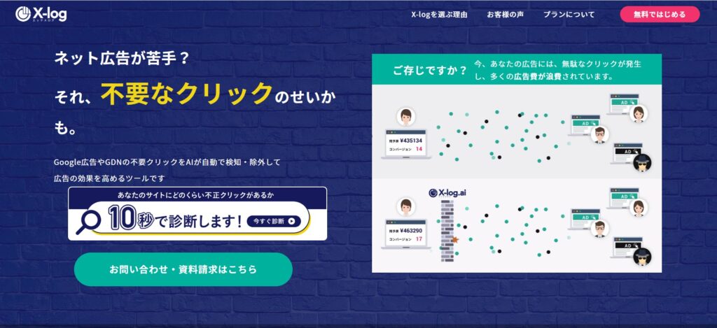 X-log.aiは、日本の株式会社ヒューマンソリューションズが提供するリスティング広告向け無料不正クリック防止ツールです。※無料版で対応しきれない場合は有料版も提供。