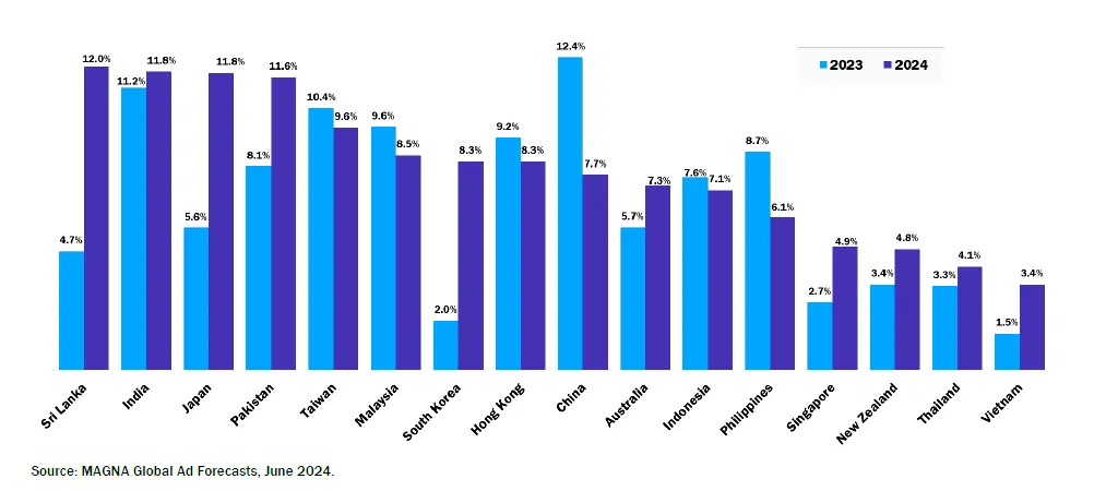 (出典:MANGA「MAGNA report: アジア太平洋 ad market to grow by 8.5% in 2024」)