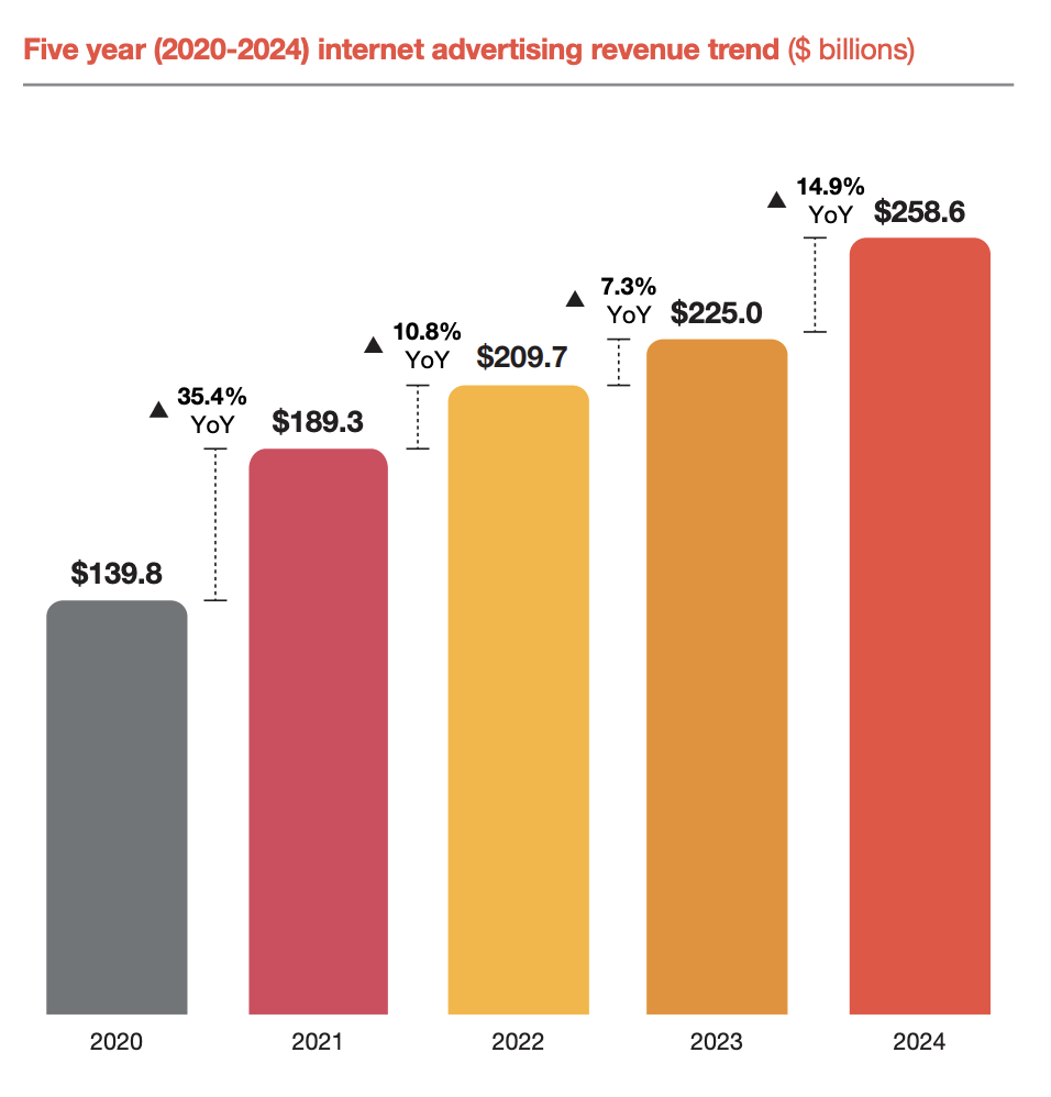 (出典:Interactive Advertising Bureau(IAB)/PwC 「Internet Advertising Revenue Report Full Year 2024」)