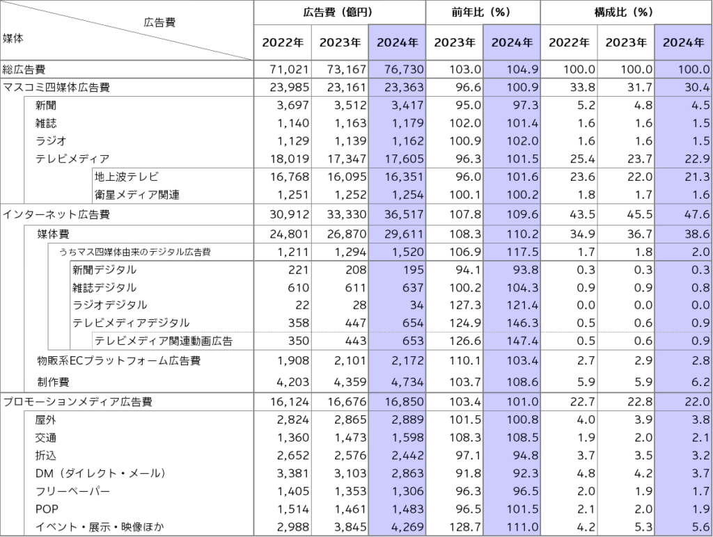 (出典:電通「2024年 日本の広告費」)