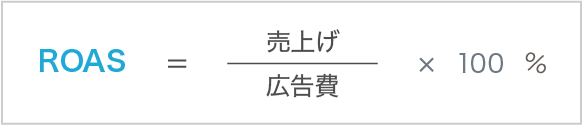 ROASは「広告費に対する売上げ」の比率を示す指標で、以下の式で求められます。