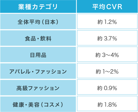 業種別に見ると、CVRには大きなばらつきがあります。以下は主な業種ごとの平均CVRの目安です。