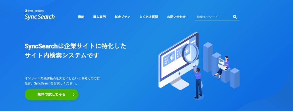この課題に対する解決策として、SaaS型のサイト内検索エンジンを導入する企業が増えています。たとえば、BtoB企業を中心に支持を集めているのが「SyncSearch」です。