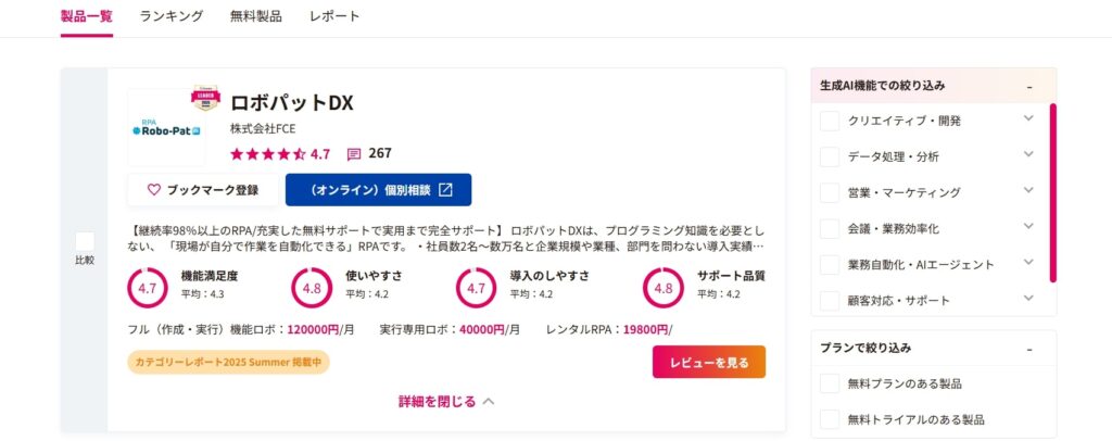 レビュー系サイトを利用する際には、星の数やランキングだけを参考にするのではなく、自社と同規模・同業種のユーザー事例を重点的に確認することが重要です。