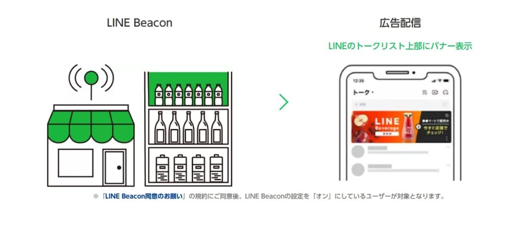 さらに、店舗周辺でのリアルタイムなアプローチを可能にするのが、LINEビーコンやGPS連動を活用した施策です。店舗の半径200m以内にいるユーザーに対し、「本日来店された方限定で10%オフクーポンを配布中」といった広告を自動送信できます。