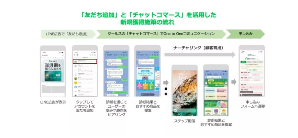 こうした中、LINE広告とLINE公式アカウントを組み合わせれば、段階的なコミュニケーションと情報提供を通じて、顧客の不安を解消しながらコンバージョンへ導く強力な仕組みを構築できます。