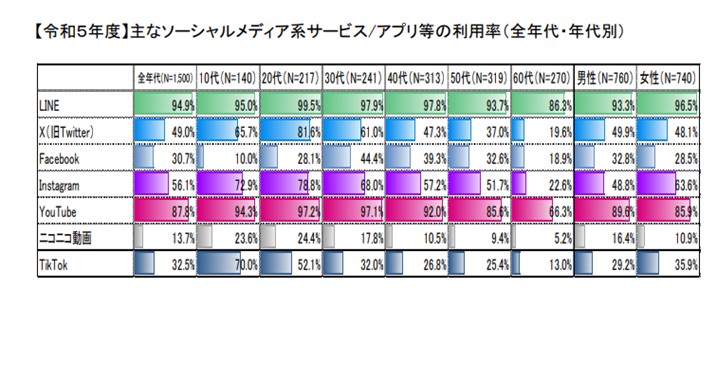 総務省の調査によれば、全年代のLINEの利用率は約95%にも達するとのことです。この数字は、もはやSNSとしての枠を超え、インフラとしての地位を確立しているともいえます。