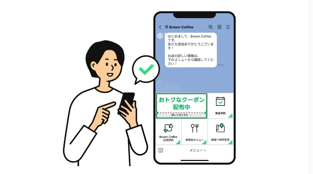 これらの機能を活用することで、チャットによる双方向コミュニケーションだけでなく、配信施策の効果測定まで一貫して実施可能です。たとえば、友だち登録による集客から始まり、ユーザーの興味関心に応じたクーポンを配信し、購入や予約といったコンバージョンへとつなげる活用が期待できます。