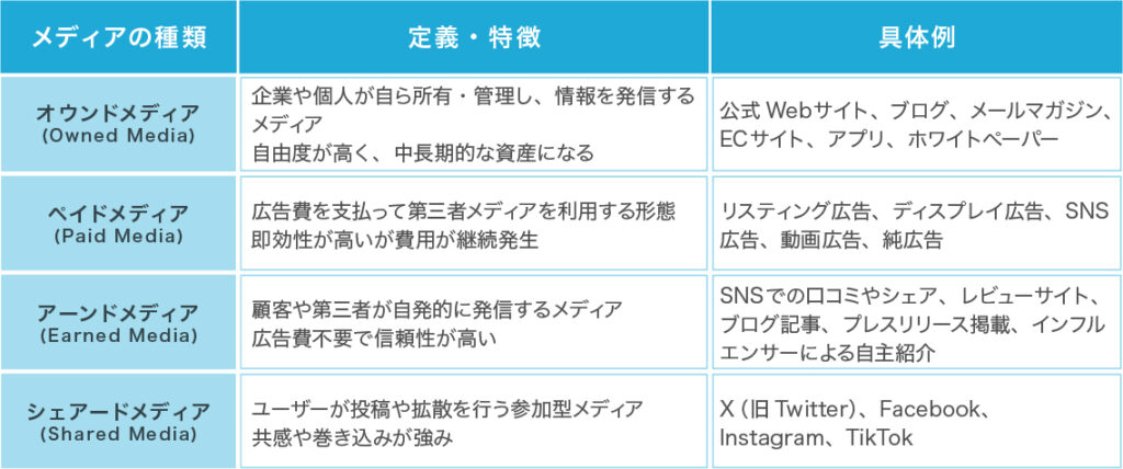 | メディアの種類 | 定義・特徴 | 具体例 |