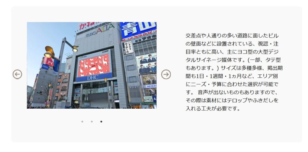 | 屋外広告(OOH)メディア | 街頭や公共空間に設置される広告。視覚的インパクトと強制的な視認性が強み。 | 大型ビルボード、屋上広告、デジタルビジョン、ネオンサイン |