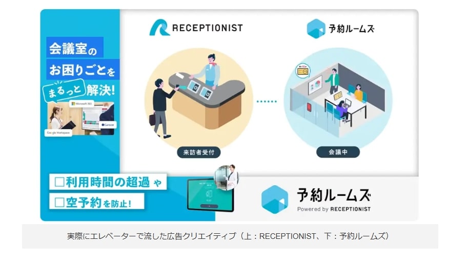 クラウド受付システム「RECEPTIONIST」や会議室予約システム「予約ルームズ」などを展開するRECEPTIONIST社では、エンタープライズ領域への認知拡大を目的に、オフィスエレベーターメディア「GRAND」への出稿を実施しました。従来はSEOやリスティング広告を中心に施策を行っていましたが、大手企業層へのアプローチには限界を感じていたといいます。