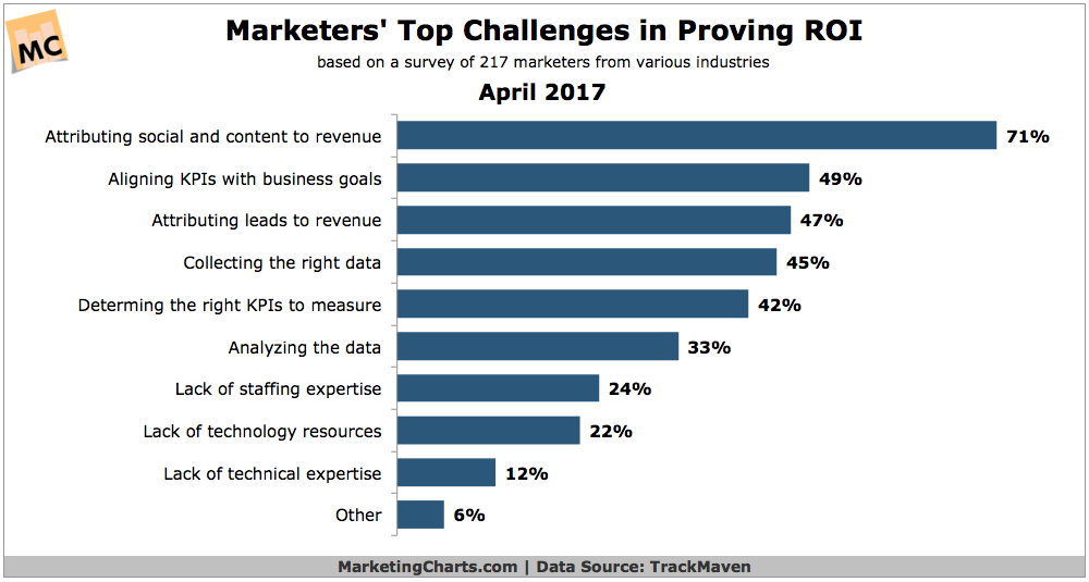 この視点は実務でも課題として認識されています。TrackMaven社が2017年に発表したデータでは「KPIとビジネスゴールの不整合」が広告ROIを証明するうえでの課題として49%のマーケターに指摘されています。