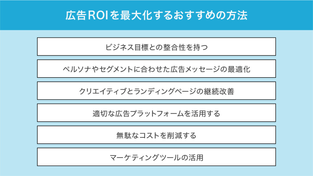 広告ROIは分母に広告費を含む指標である以上、いかに「無駄な出費」を避けるかが直接的に数値に影響します。どれほど広告が機能していても、投資額が過剰であれば広告ROIは低くみえてしまうため、「どの施策に、どの程度の費用をかけるのが妥当か」を見極める視点が必要です。
