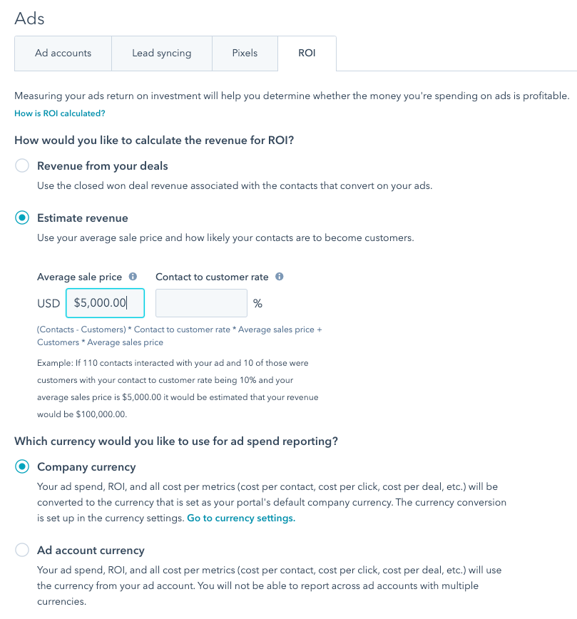 (出典:HubSpot「Configure the calculation of 広告ROI for paid ad campaigns」)