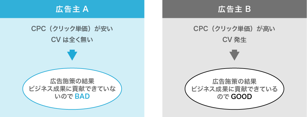 クリック単価が低くても、そのクリックからビジネスの成果(コンバージョン)を得られなければ意味がなく、一方でクリック単価が高くても高価値な顧客獲得につながるなら投資対効果上は正当化されると考えられます。