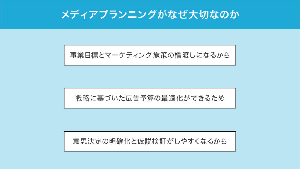 それを踏まえると、以下の観点からメディアプランニングは重要だといえます。それぞれ個別にみていきましょう。