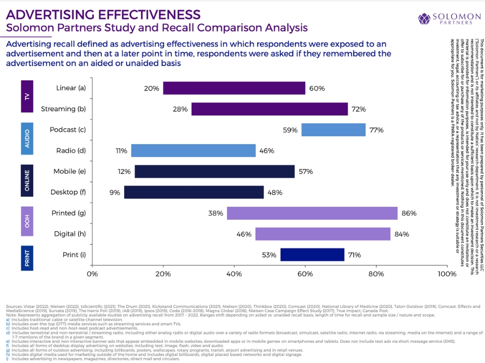 (出典:SolomonPartners「ソロモン・パートナーズの2023年ベンチマークレポートによると、屋外広告は他のメディアチャネルと比較して最も高いレベルの消費者想起を生み出している。」)