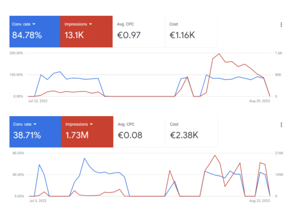 市場で競合が広告出稿を強化すると、自社の広告がターゲットに届く割合である「SOV(Share of Voice)」が低下します。SOVが下がれば、ブランド想起や指名検索数が競合に奪われ、結果的に自社のコンバージョン率(CVR)にも悪影響を及ぼします。