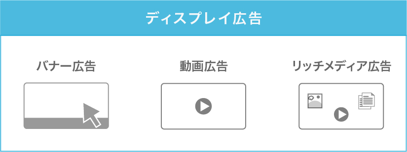 | 主なメリット | ・リーチの広さ・精緻なターゲティング(リマーケティング)・マーケティングファネルのさまざまな段階に対応・詳細な効果測定・動画・リッチメディア活用可。 | ・制作が容易・ブランドビジュアルの明確な訴求ができる・Webページ上の視認性が高い場所での即時的なクリック誘導ができる |