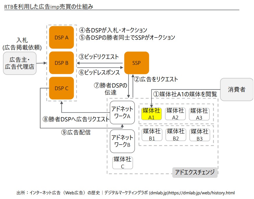 そして近年は膨大な広告枠のリアルタイム入札(RTB)が可能なアドエクスチェンジが登場し、現在のオンライン広告取引のスタンダードになっています。